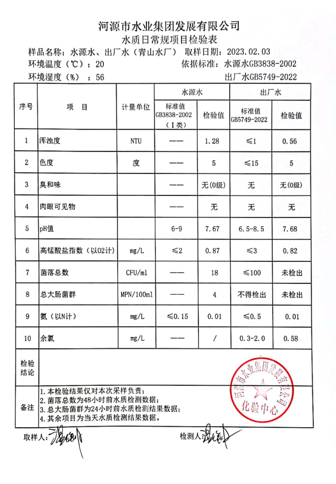 2023年2月3日水質(zhì)檢驗(yàn)報(bào)告