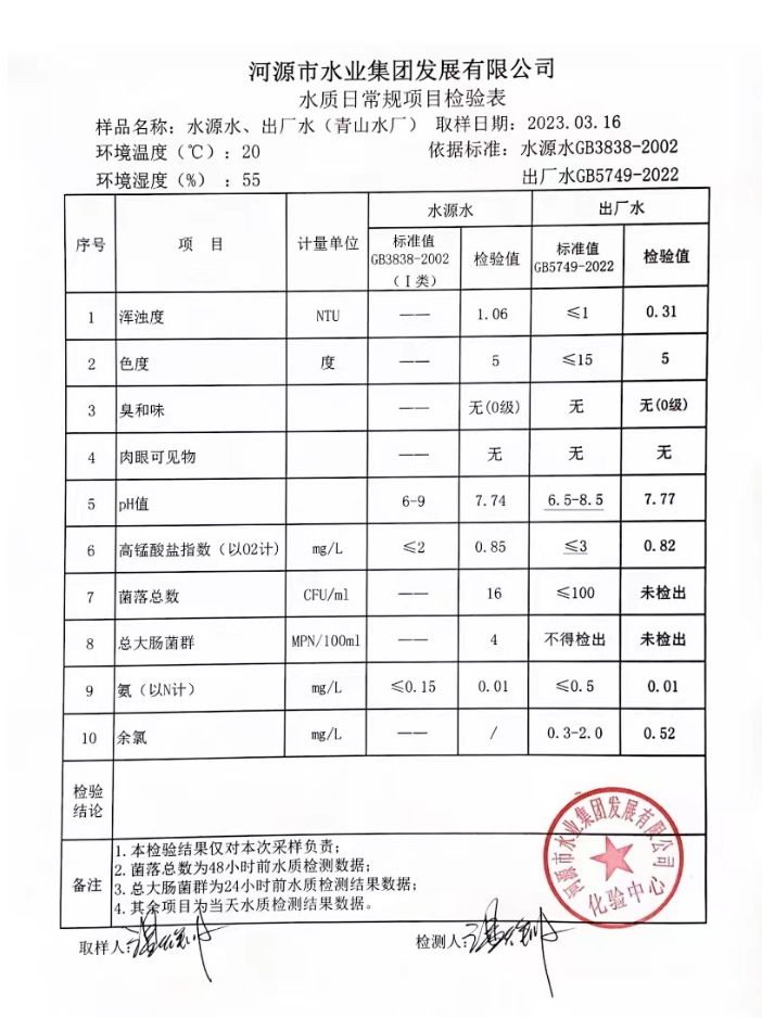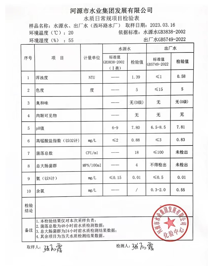 2023年3月16日水質(zhì)檢驗(yàn)報告