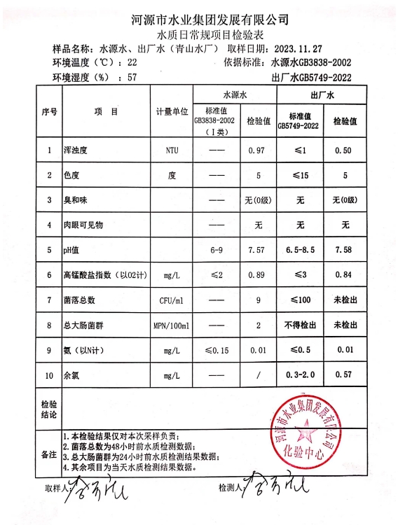 2023年11月27日水質(zhì)檢驗(yàn)報(bào)告 ???