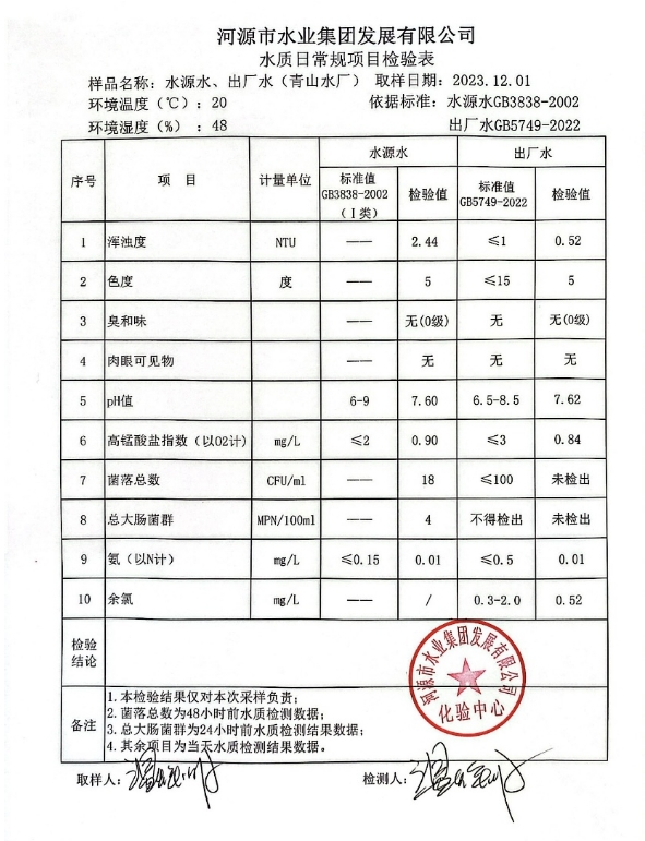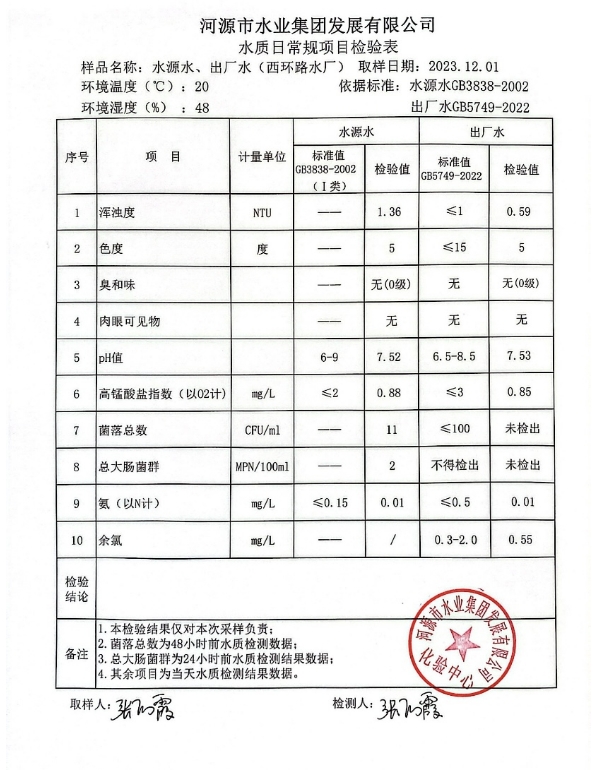 2023年12月1日水質(zhì)檢驗報告 ???