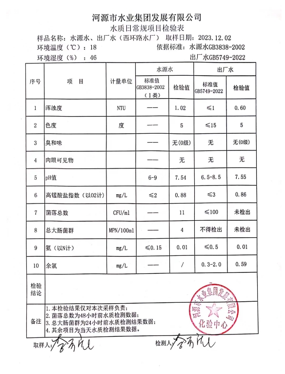 2023年12月2日水質(zhì)檢驗(yàn)報(bào)告 ???