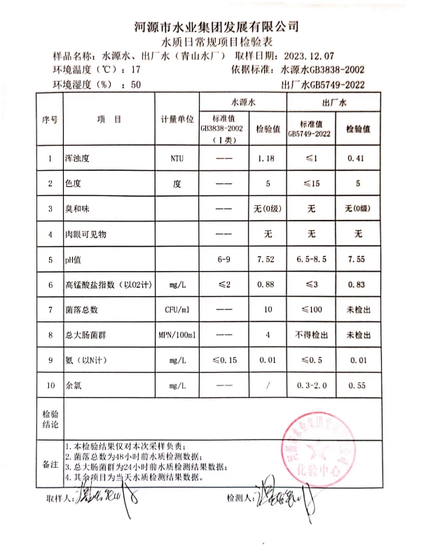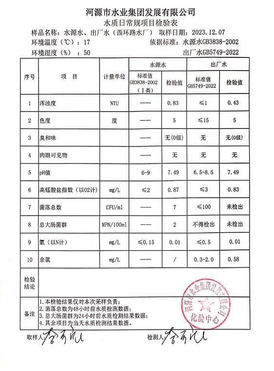 2023年12月7日水質(zhì)檢驗(yàn)報(bào)告 ???