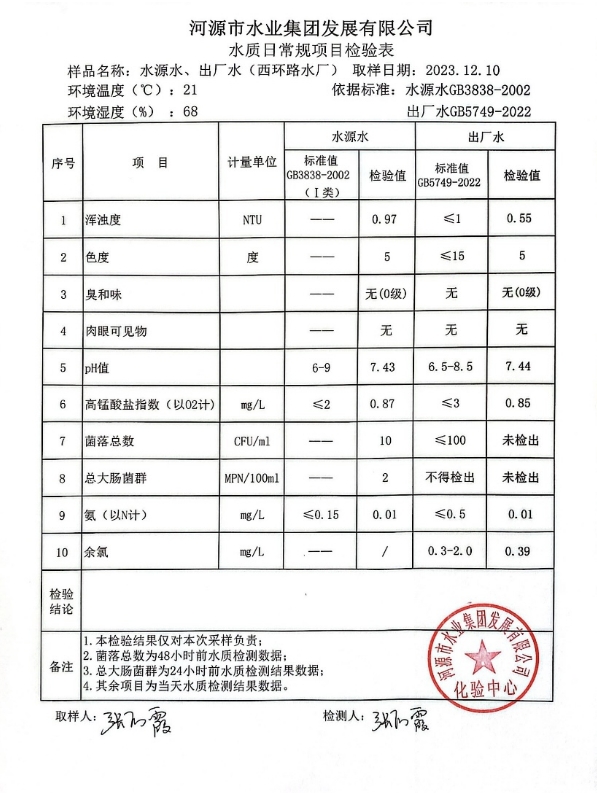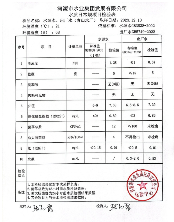 2023年12月10日水質(zhì)檢驗(yàn)報(bào)告 ???