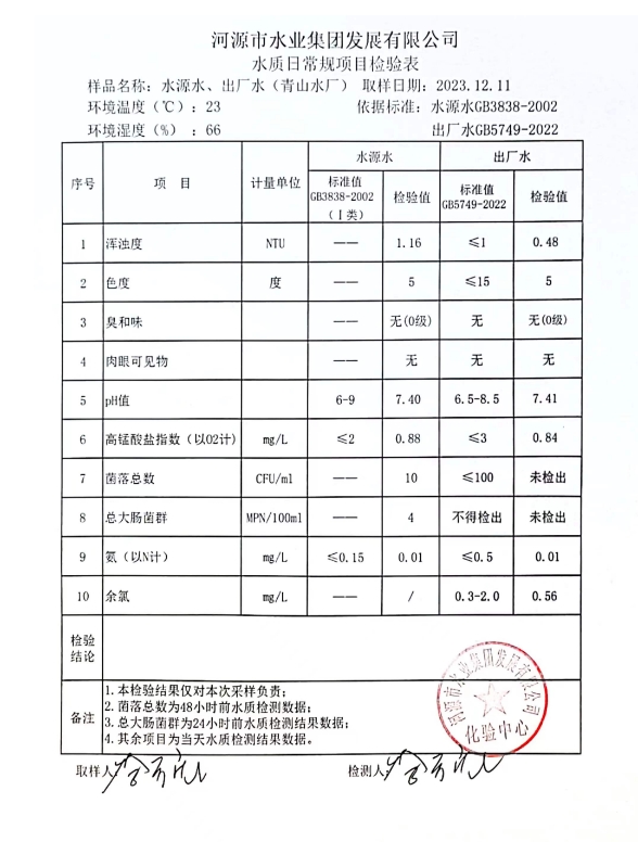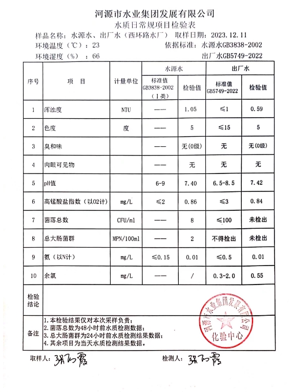 2023年12月11日水質(zhì)檢驗(yàn)報(bào)告 ???