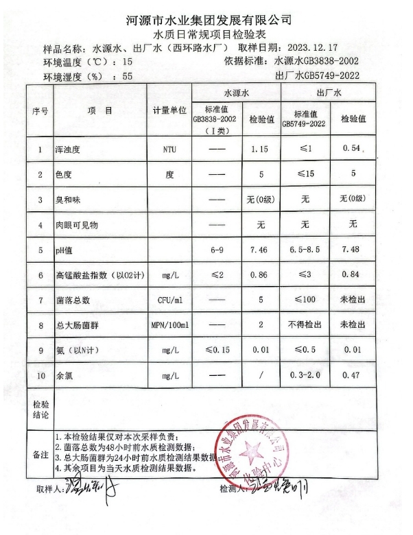 2023年12月17日水質(zhì)檢驗(yàn)報(bào)告 ???