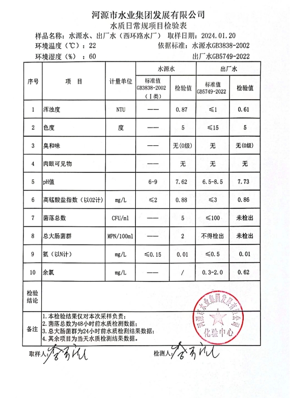 2024年1月20日水質(zhì)檢驗(yàn)報(bào)告 ???