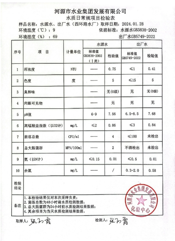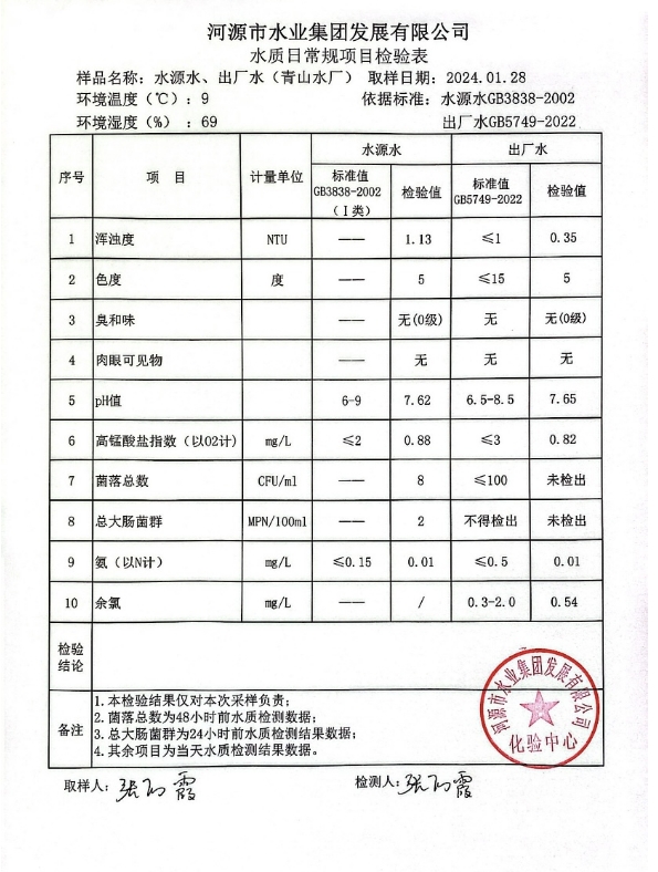 2024年1月28日水質(zhì)檢驗(yàn)報告 ???