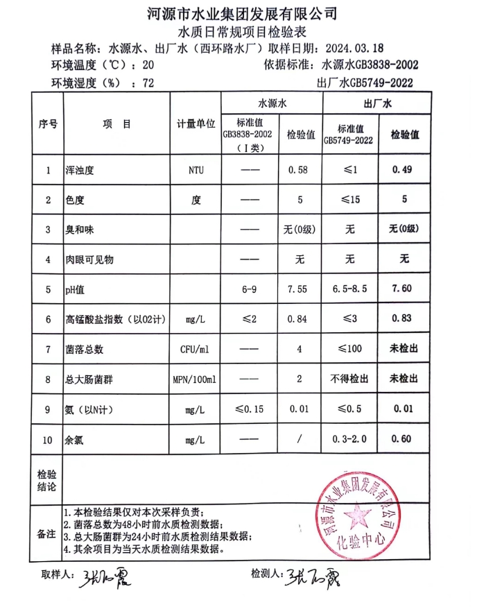 2024年3月18日水質(zhì)檢驗(yàn)報(bào)告