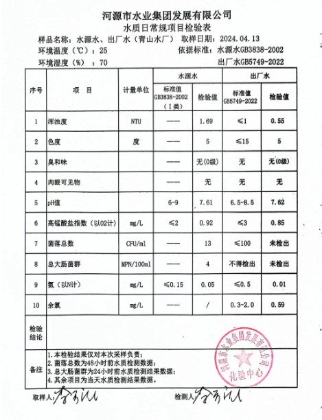 2024年4月13日水質(zhì)檢驗(yàn)報告